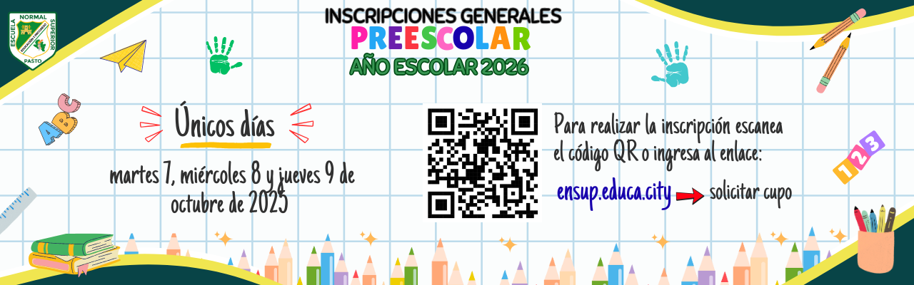 bannerCongresobannerCongresobannerCongresoWhatsApp Image 2025-04-29 at 11.51.20 AMBannerCapacidadesDiversas2025pfcbanner_universidad_andes2025 Actualidad Normalista Destacado Proceso de admisión de estudiantes a preescolar año escolar 2026 Leer más » + Noticias Noticias Escuela Normal Superior de Pasto: 114 años de memoria, legado y formación. Leer más » Noticias XII DE FILOSOFIA NORMALISTA Leer más » Noticias Reconocimiento a la Maestra Gladys del Socorro Sepúlveda Pabón Leer más » Noticias SMARTFILMS en la Escuela Normal: ¡Una experiencia de cine con celular! Leer más » jORNADABanner-PFCBanner-Investigacion Accesos directos