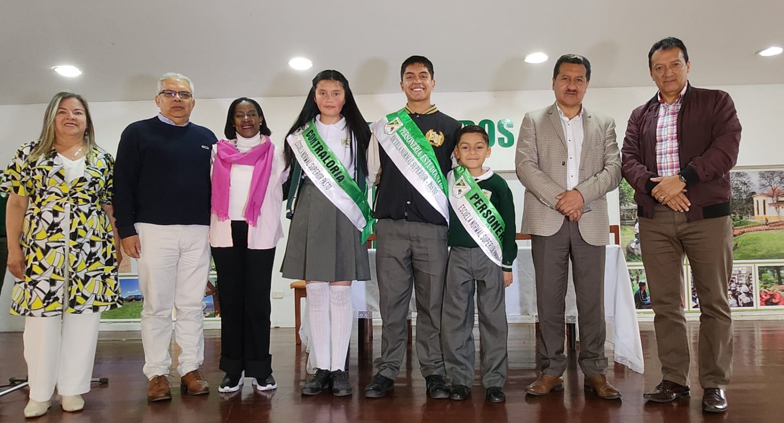 Hoy, 13 de abril de 2023, en ceremonia solemne presidida por el Señor Rector Magíster José Coral Asaín y con el acompañamiento de los Coordinadores institucionales, se procedió a imponer la banda como Personero, Personerito y Contralora Estudiantil a los Estudiantes Alejandro Martínez, Jacobo Rosero y Leidy Pantoja, respectivamente.