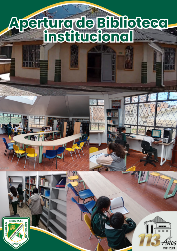La Escuela Normal Superior de Pasto, en los últimos años ha venido realizando un proceso de depuración, organización y digitalización de enciclopedias, libros, textos, revistas, trabajos de investigación existentes en la biblioteca de la Institución. Será un espacio de acceso público para la producción de conocimiento, el intercambio de información y la cultura. El objeto de su remodelación y modernización es, mejorar un espacio vital de aprendizaje, en el cual, estudiantes, docentes y directivos tengan a su alcance una gran diversidad de recursos educativos que promuevan la construcción del conocimiento.