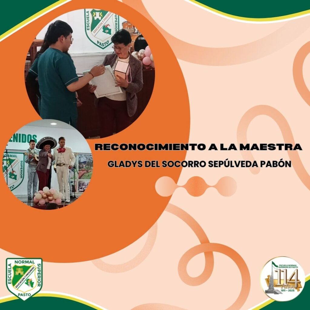 La Escuela Normal Superior de Pasto le rindió un especial homenaje al culminar su trayectoria docente. En un evento organizado por los estudiantes, docentes y directivos del programa de formación complementaria se reconoció su compromiso, responsabilidad y entrega a la formación de maestros y maestras. Maestra Gladys gracias por todo lo compartido y enseñado, siempre será recordada con gratitud y afecto en la Escuela Normal superior de Pasto.