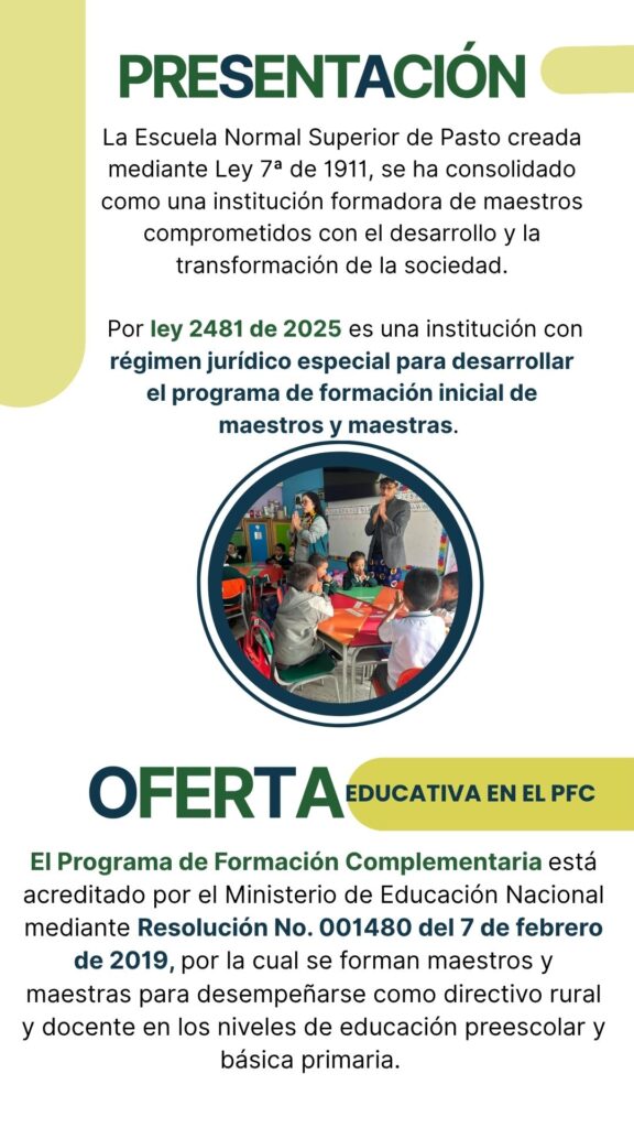 noviembre 11, 2025 Inscripciones Abiertas Programa de Formación Complementaria 2026 Información General Mas Informacion PrevANTERIORLa Comunidad Educativa de la Escuela Normal Superior de Pasto lamenta profundamente el fallecimiento de la estudiante Danna Isabella Pantoja Pantoja, del grado 6-3. SIGUIENTEOrgullo Normalista: Camila Jaramillo Caicedo, ejemplo de disciplina y constancia en el Karate DoNext