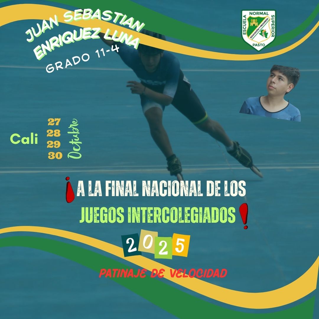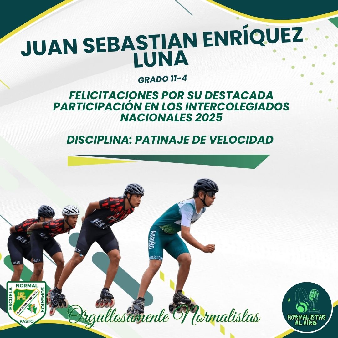 Noticias Orgullo Normalista: Juan Sebastián Enríquez representó a Nariño en los Juegos Intercolegiados de Patinaje de Velocidad Leer más » 14 noviembre, 2025