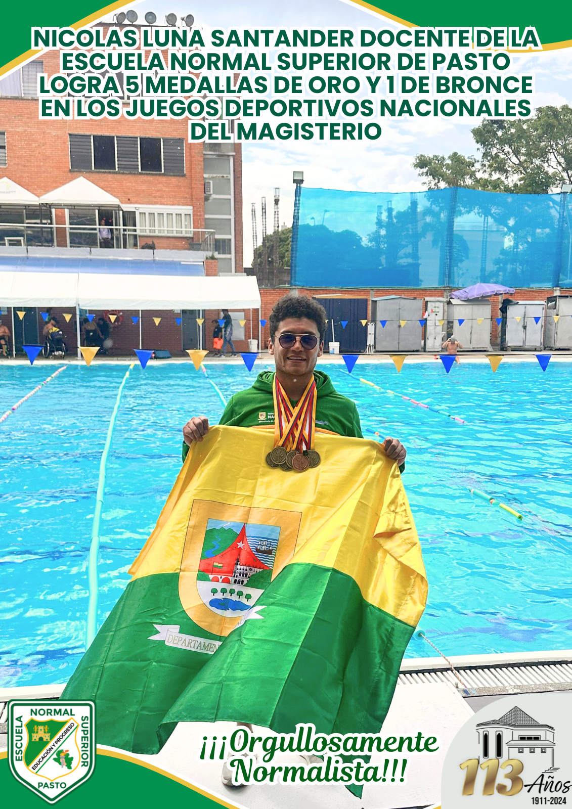 Noticias NICOLAS LUNA SANTANDER DOCENTE DE LA ESCUELA NORMAL SUPERIOR DE PASTO LOGRA 5 MEDALLAS DE ORO Y 1 DE BRONCE EN LOS JUEGOS DEPORTIVOS NACIONALES DEL MAGISTERIO Leer más » 10 octubre, 2024